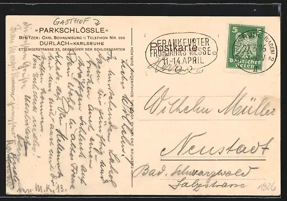 alte Ansichtskarte, gelaufen 1926, guter Zustand