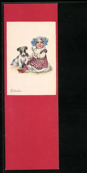 Künstler-AK E. Colombo: Mini-AK Kleines Mädchen mit einem Hund
