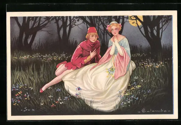 Künstler-AK E. Colombo: Zweisamkeit im Mondschein