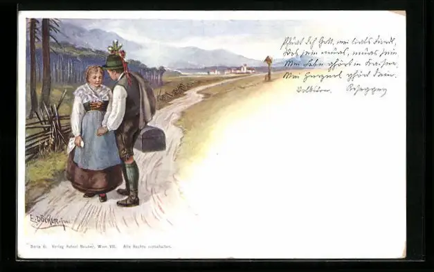 Künstler-AK E. Döcker: Abschied auf einer Landstrasse