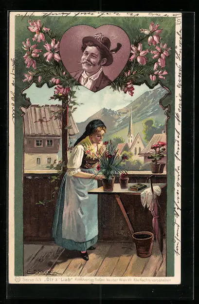 Künstler-AK E. Döcker: Dir z` Liab, Frau denkt an verstorbenen Mann