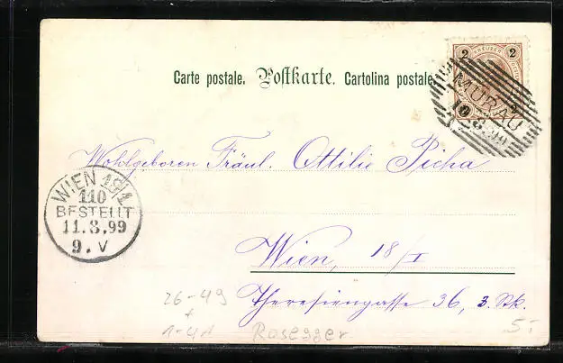 alte Ansichtskarte, gelaufen 1899, guter Zustand