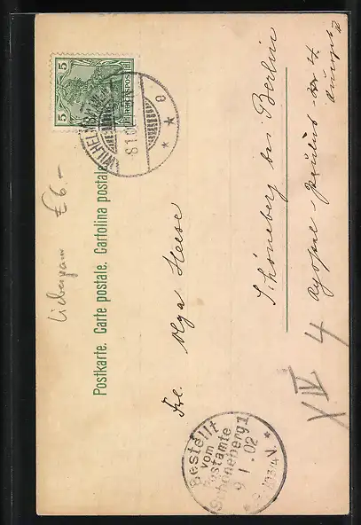 alte Ansichtskarte, gelaufen 1902, guter Zustand