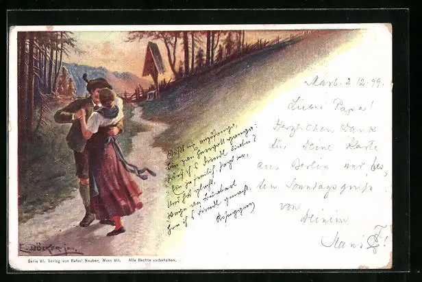 Künstler-AK E. Döcker: Tanzendes Paar im Wald