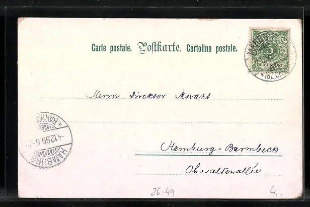 alte Ansichtskarte, gelaufen 1899, Eckknick li. unten, guter Zustand