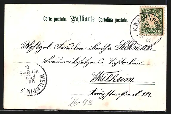 alte Ansichtskarte, gelaufen 1900, guter Zustand