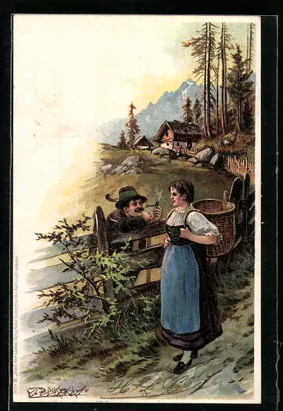 Künstler-AK E. Döcker: Zweisamkeit im Hochland
