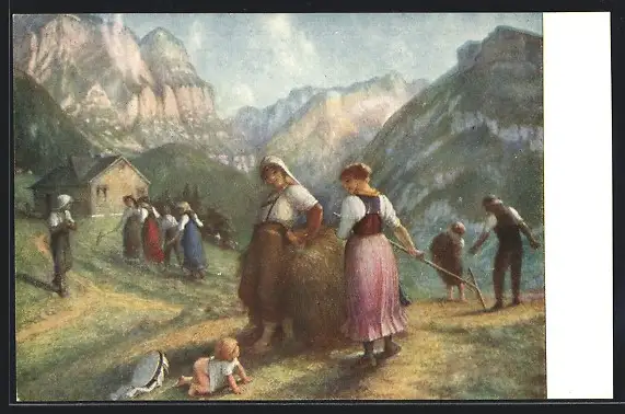 Künstler-AK E. Rittmeyer, Heuernte, Pro Juventute