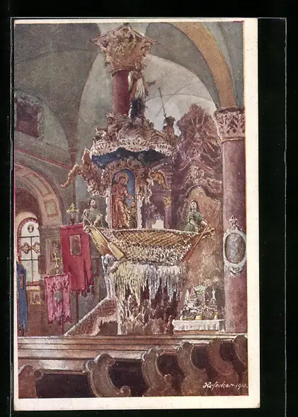 Künstler-AK E.F. Hofecker: Traunkirchen, Inneres der Kirche