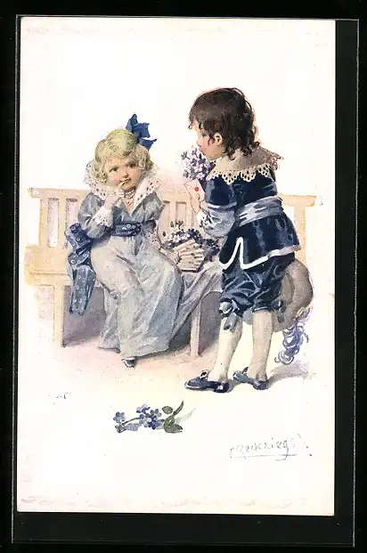Künstler-AK E.Reckziegel: Kinder als Liebespaar
