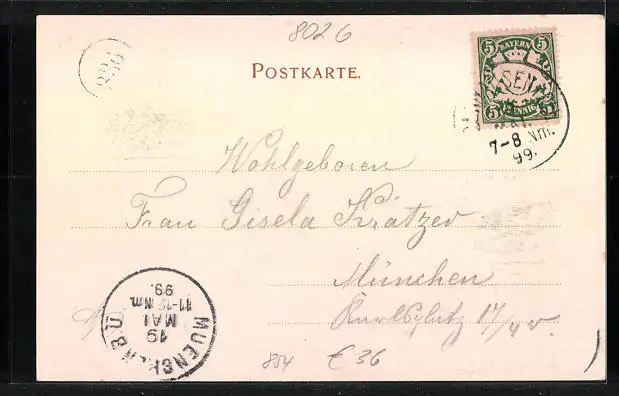 alte Ansichtskarte, gelaufen 1899, guter Zustand