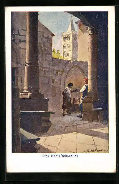 Künstler-AK Edo v. Handel-Mazzetti: Otok Rab, Ortspartie