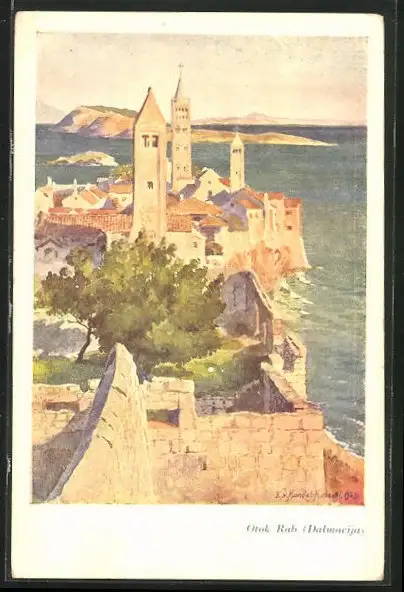 Künstler-AK Edo v. Handel-Mazzetti: Rab, Panorama