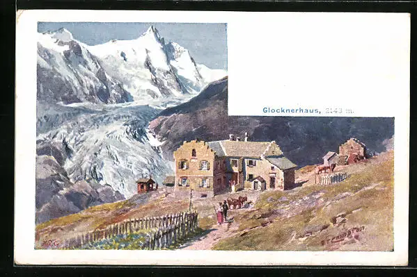 Künstler-AK Edward Theodore Compton: Glocknerhaus mit Bergpanorama