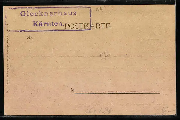 Personenbezogene Daten auf der Rückseite der Karte wurden durch blauen Textmarker unkenntlich gemacht. Die blauen Stellen sind auf die Vorderseite durchgeweicht und wirken sich negativ auf das Postkartenfoto aus