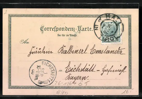 alte Ansichtskarte, gelaufen 1900, guter Zustand