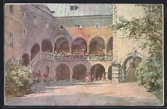 Künstler-AK Edward Theodore Compton: Kalgenfurt, Im Landhaushof