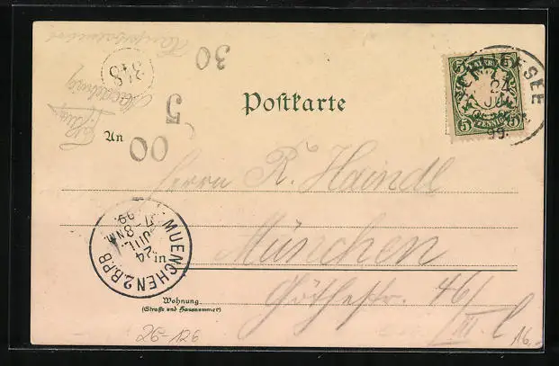 alte Ansichtskarte, gelaufen 1899, guter Zustand