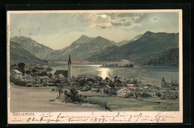 Künstler-AK Edward Theodore Compton: Schliersee, Totalansicht mit Mondschein