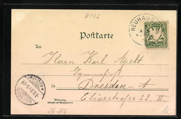 alte Ansichtskarte, gelaufen 1899, guter Zustand