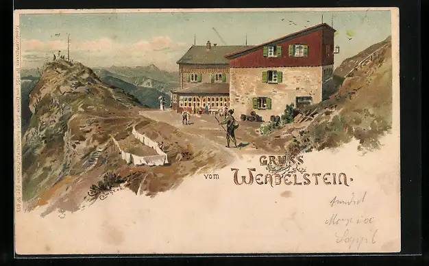 Künstler-AK Edward Theodore Compton: Wendelstein, Gasthaus am Gipfel