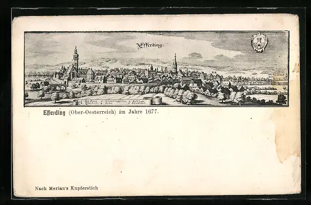 Künstler-AK Eferding /Ober-Oesterreich, Ortsansicht aus dem Jahre 1677 nach Merian