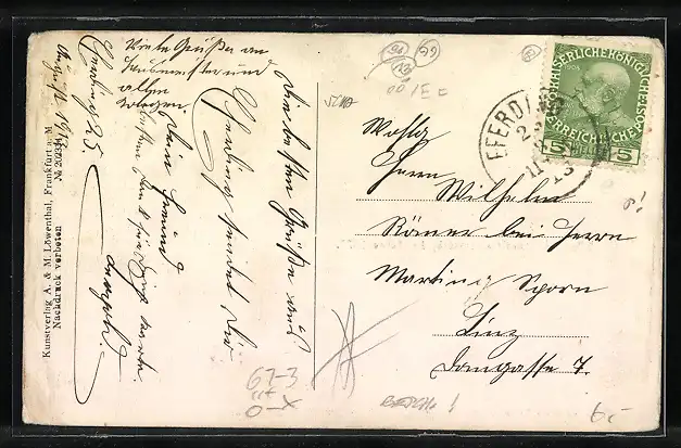 gelaufen 1913, Eckknick li. unten, guter Zustand