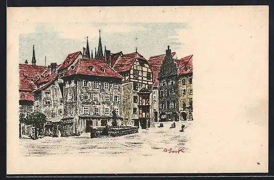 Künstler-AK Eger, Marktplatz mit Brunnen