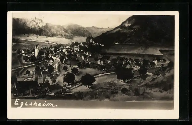 Künstler-AK Egesheim, Totalansicht von einem Berg aus