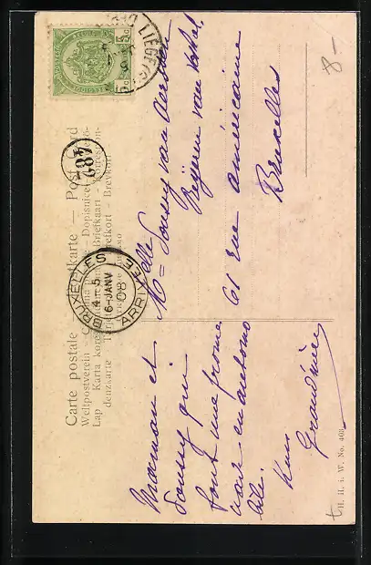 alte Ansichtskarte, gelaufen 1908, Eckknick li. oben, guter Zustand
