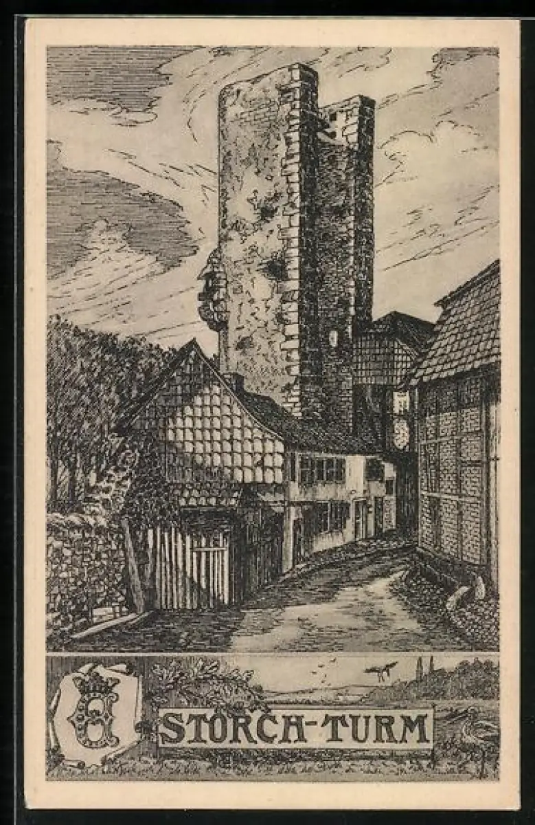 Künstler-AK Einbeck, Blick zum Storch-Turm