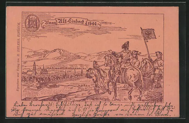 Künstler-AK Einbeck, Teilansicht mit Reitern