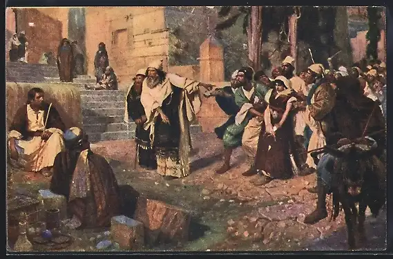 Künstler-AK Eine Sünderin wird von der Dorfbewohnern umhergetrieben