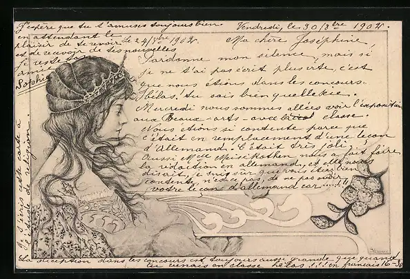 Künstler-AK Eine junge Frau mit einem Diadem, Jugendstil