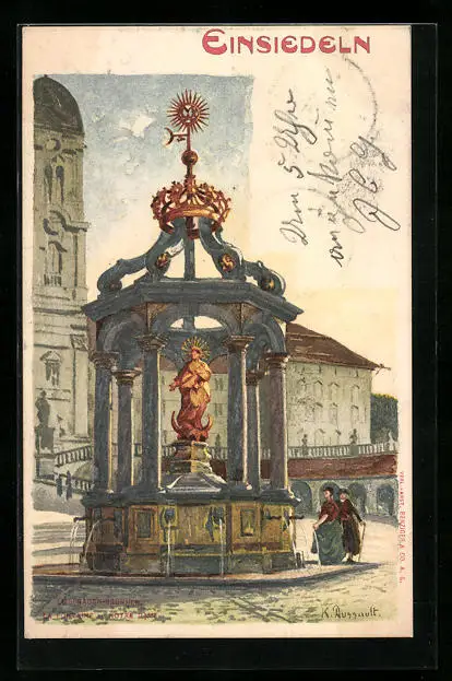 Künstler-AK Einsiedeln, Partie am Brunnen