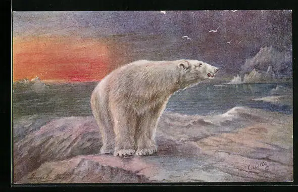 Künstler-AK Eisbär auf einer Scholle im Eismeer
