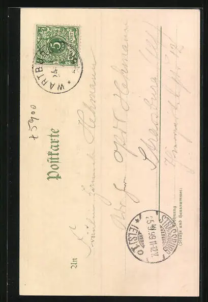 alte Ansichtskarte, gelaufen 1899, guter Zustand