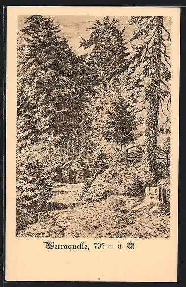 Künstler-AK Eisfeld, Partie an der Werraquelle