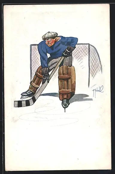 Künstler-AK Eishockey, Goalie, Torhüter