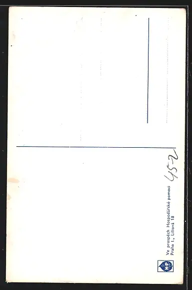Personenbezogene Daten auf der Rückseite der Karte wurden durch blauen Textmarker unkenntlich gemacht. Die blauen Stellen sind auf die Vorderseite durchgeweicht und wirken sich negativ auf das Postkartenfoto aus
