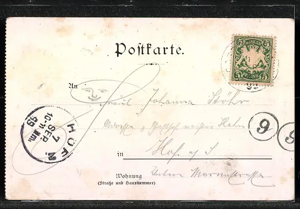 alte Ansichtskarte, gelaufen 1899, guter Zustand