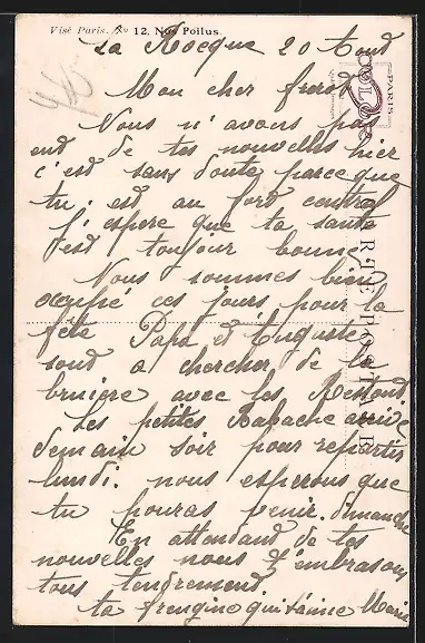Personenbezogene Daten auf der Rückseite der Karte wurden durch blauen Textmarker unkenntlich gemacht. Die blauen Stellen sind auf die Vorderseite durchgeweicht und wirken sich negativ auf das Postkartenfoto aus