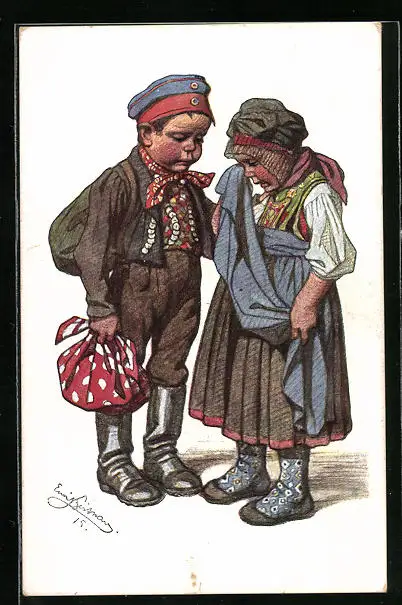 Künstler-AK Emil Beithan: Junge in Uniform beim Abschied von seiner Liebsten