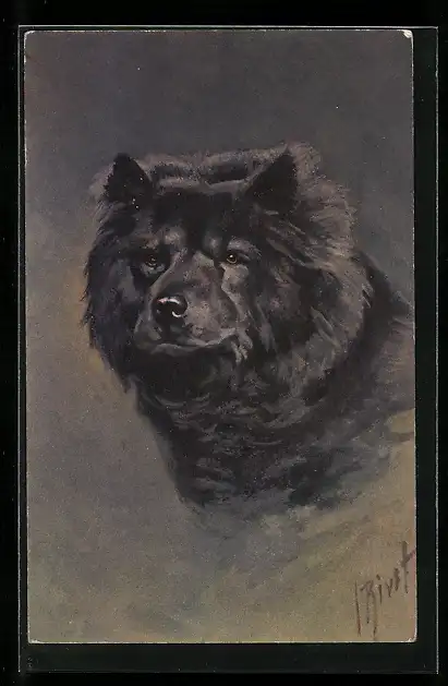 Künstler-AK Entspannter schwarzer Chow-Chow
