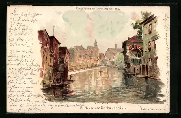 Künstler-AK Erfurt, Blick von der Rathausbrücke