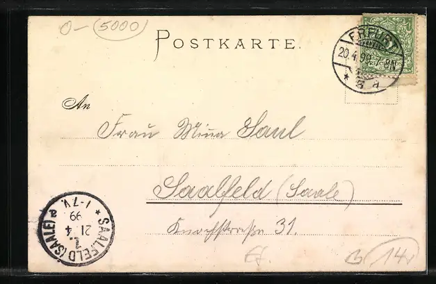 alte Ansichtskarte, gelaufen 1899, guter Zustand