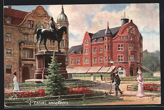 Künstler-AK Erfurt, Kaiserplatz mit Denkmal