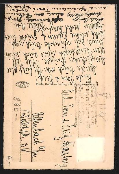 alte Ansichtskarte, gelaufen, Briefmarke entfernt, rückseitig Oberflächenschaden, guter Zustand