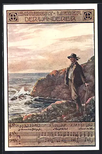 Künstler-AK Ernst Kutzer: Wanderer blickt auf das Meer