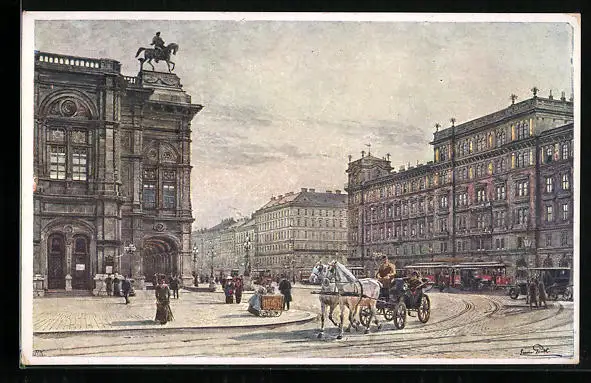 Künstler-AK Erwin Pendl: Wien, Opernring mit Strassenbahnen